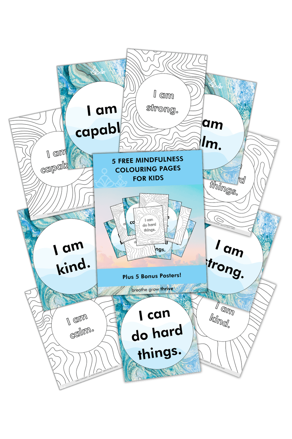 You’ll get 5 mindfulness-themed designs, each available as both a colouring page and a ready-to-use poster. Each features a powerful, positive statement: